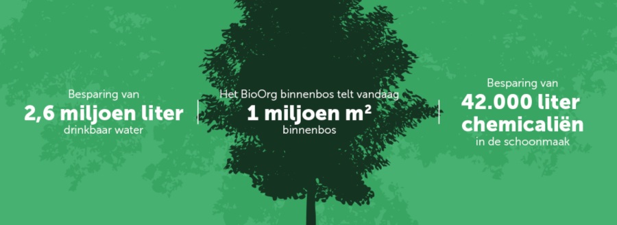 Schoonmaken met BioOrg staat dus gelijk aan het planten van bossen in je gebouw. Een o zo eenvoudige, maar spectaculaire manier om ons hoogsteigen binnenklimaat zichtbaar, voelbaar en meetbaar te verbeteren.